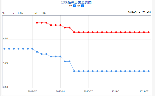 8月20日,中国央行公布一年期和五年期贷款市场报价利率(LPR)分别维持在3.85%和4.65%不变,均为连续第16个月维持不变。